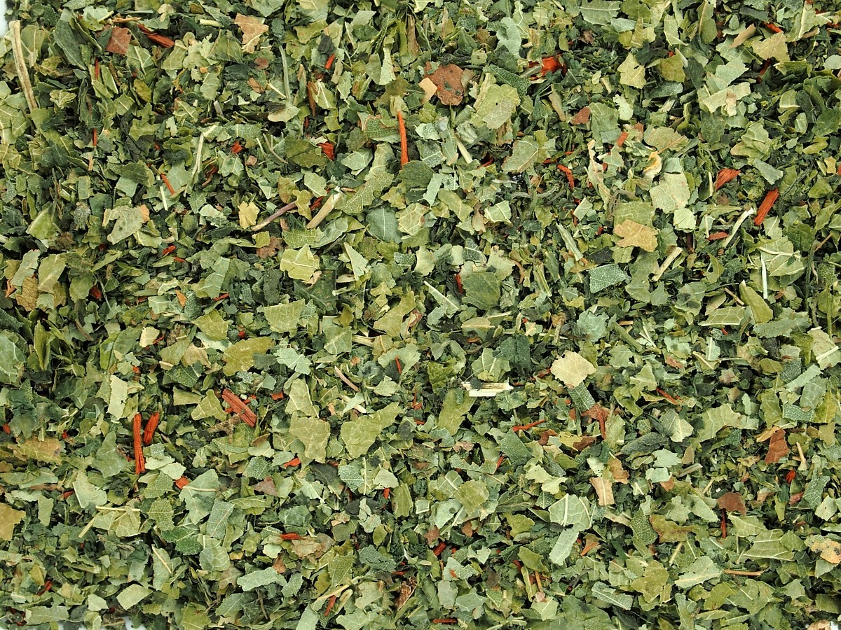 Složení: černý rybíz list, kopřiva list, bříza bělokorá list, santalové dřevo.