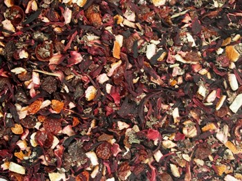 Složení: ibišek súdánský květ, rozinky, pomerančová kůra, šípek, maliny (4 %), maliník list (4 %), přírodní aroma.