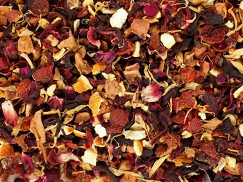 Složení: jablka, ibišek, šípek, pomerančová kůra (min. 14 %), růže, květ pomerančovníku, aroma, měsíček.