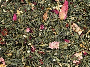 Zelené čaje Sencha a China Jasmin s nádechem jasmínových květů jsou doplněny chutí šťavnatých třešní.