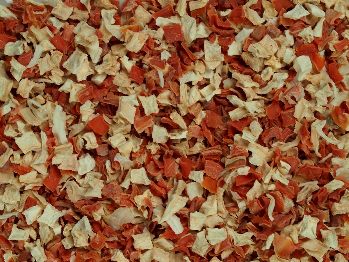 Směs sušené kostičkované kořenové zeleniny, která Vám usnadní přípravu polévek, omáček nebo salátů.
