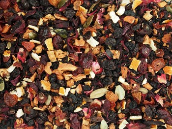 Složení: jablka, rozinky (rozinky, slunečnicový olej), klikva velkoplodá (kanadská brusinka) (min.12,6 %) (klikva, cukr, slunečnicový olej), pravý černý čaj (min.12,6 %), šípek, ibišek, pomerančová kůra, černý rybíz, aroma brusinek (min. 2 %), listy brusinky (min. 0,7 %). Může obsahovat stopy suchých skořápkových plodů.