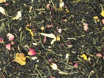 Aromatická směs černého čaje, zeleného čaje Sencha, jasmínu, růží, slunečnice a aroma.