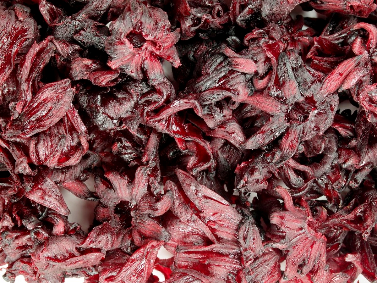 Složení: ibišek květ (51 %), cukr (47 %), kyselina citronová (1,2 %), barvivo E129, oxid siřičitý.