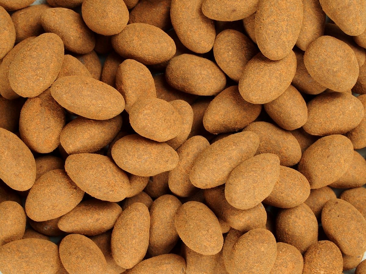 Mandle v čokoládové polevě bonnerex sypané skořicí. Složení: mandle (31 %), cukr, rostlinný tuk palmový, syrovátka z mléka, rýžová mouka, kakao (2,6 %), slunečnicový lecitin E322, skořice.
