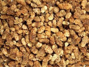 Sušené neslazené plody moruše bílé. Plody moruše obsahují vysoký podíl přírodních cukrů (glukóza, fruktóza) a proto jsou velmi sladké a lahodné. Dále obsahují bílkoviny, vlákninu, sacharidy, pektiny, třísloviny, vitamíny (A, B1, B2, C, D) a minerály (železo, vápník, fosfor, draslík, hořčík). V tradiční čínské medicíně se plody morušovníku využívají při únavě a tělesné slabosti a též jako přírodní antioxidant.